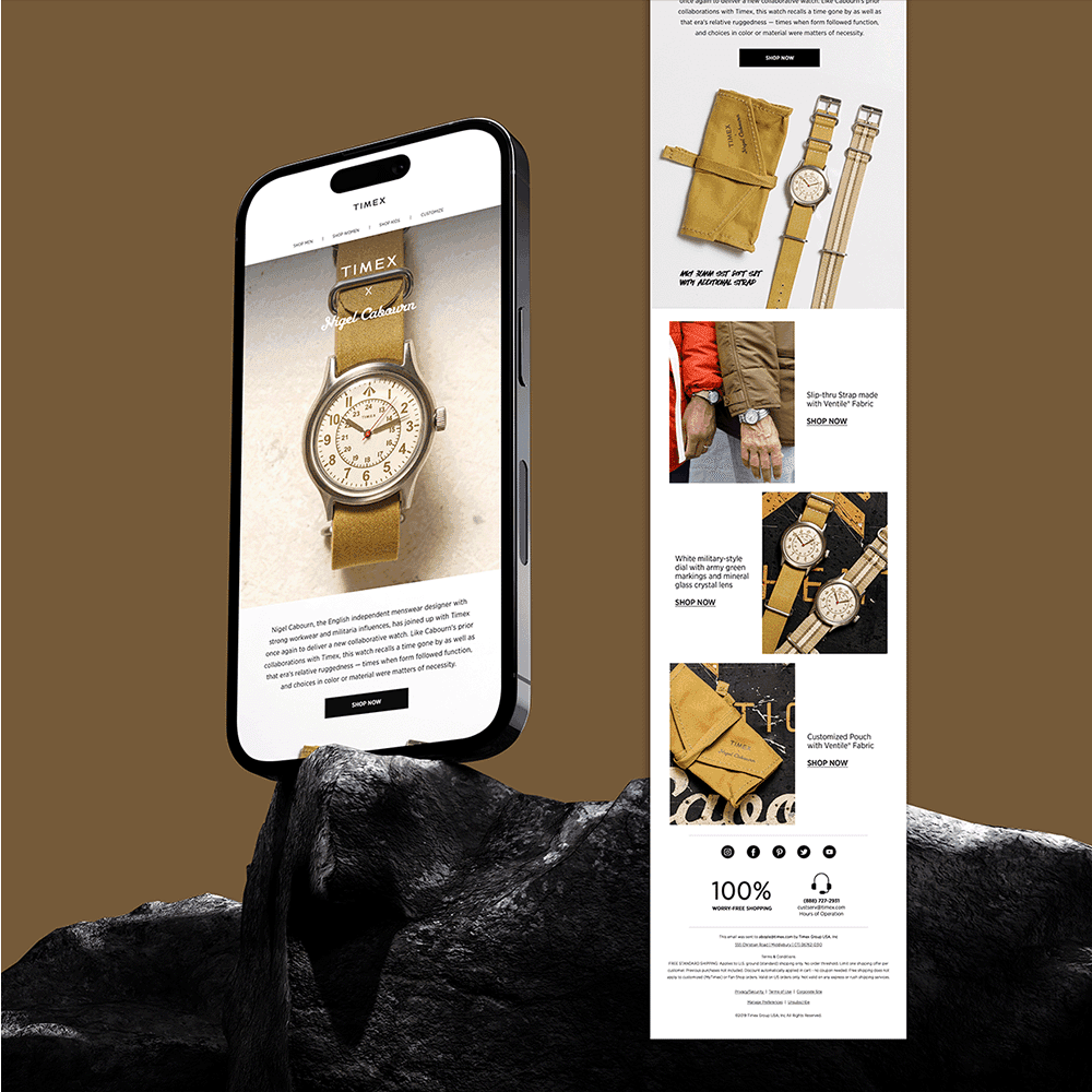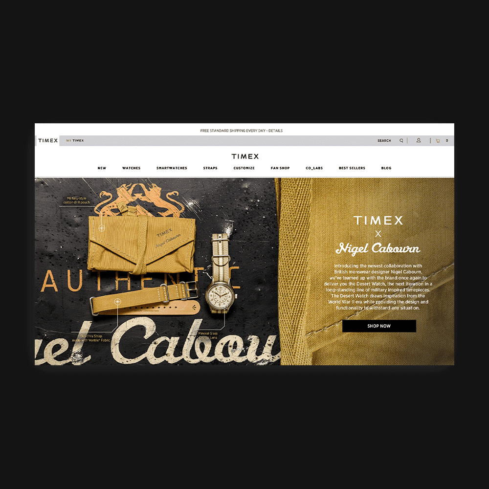 Timex and Nigel Cabourn — one of Britain's most iconic vintage and military-inspired designers — were dropping a collaboration. The Desert Watch needed to feel like it belonged in Cabourn's world: rugged, archival, unapologetically specific.